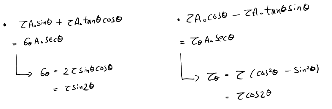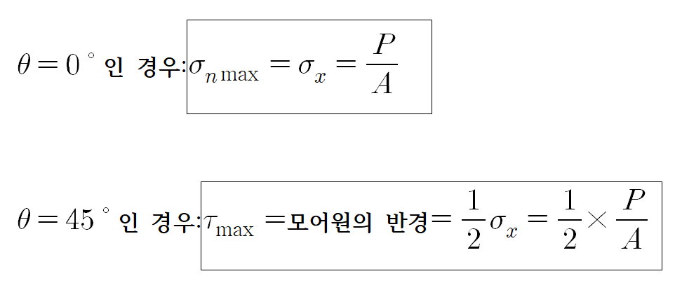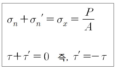 - 경사면에서 발생하는 최대전단응력은 경사단면과 평행