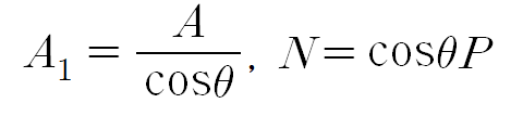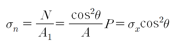 1) 임의의 경사각에서의 수직응력(=법선응력)